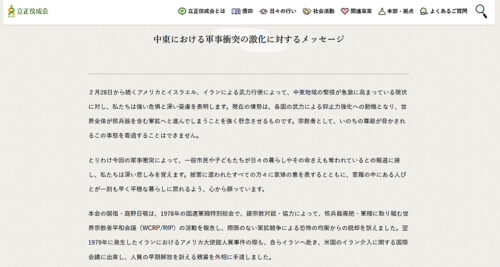 - NEW 立正佼成会が『中東における軍事衝突の激化に対するメッセージ』を発表 ニュース