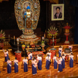 長沼妙佼脇祖の祥月命日にあたる9月10日、「脇祖さま報恩会」が大聖堂をはじめ各教会で行われた。大聖堂には約1700人が参集。庭野日鑛会長が法話を述べた。