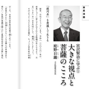 『法華三部経』全巻を通読する「寒中読誦(どくじゅ)修行」(寒修行)が、1月の大寒から2月の節分まで行われます。『法華三部経』は私たち会員の依りどころであり、読誦するだけでも有り難い功徳があります。さらに、その精神を理解した上で読誦すれば、ますます強く心の底に植えつけられ、必ず日常生活の行いに現れ、新しい人生が開けてくるはずです。その一助として、各品の要点を掲載します。自分自身の心が何を感じているのかを見つめ、深く味わうことを大切にしながら、読誦修行を機縁として一歩踏み出していきたいものです。