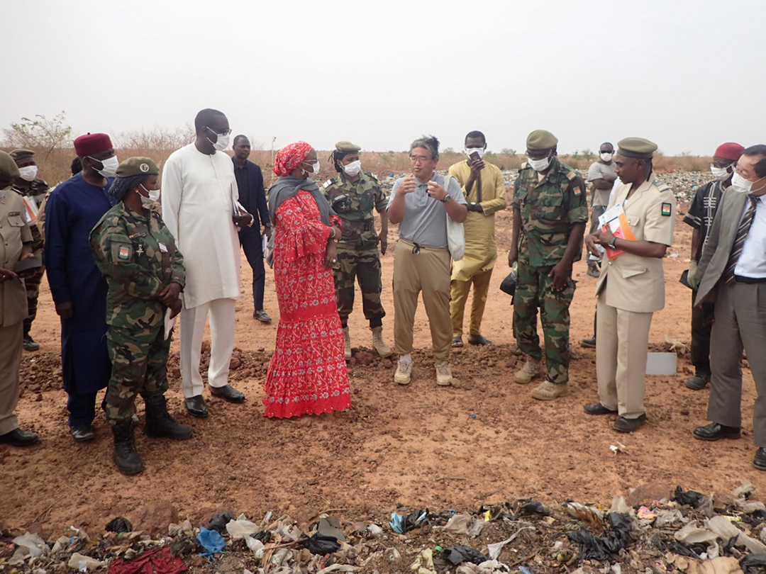 ニジェール環境省大臣が圃場を視察。緑化プロセスについて説明する大山氏(2023年5月)