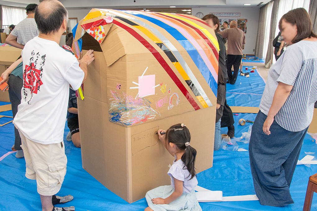 少年部員たちは想像力を駆使して段ボールハウスづくりに取り組んだ