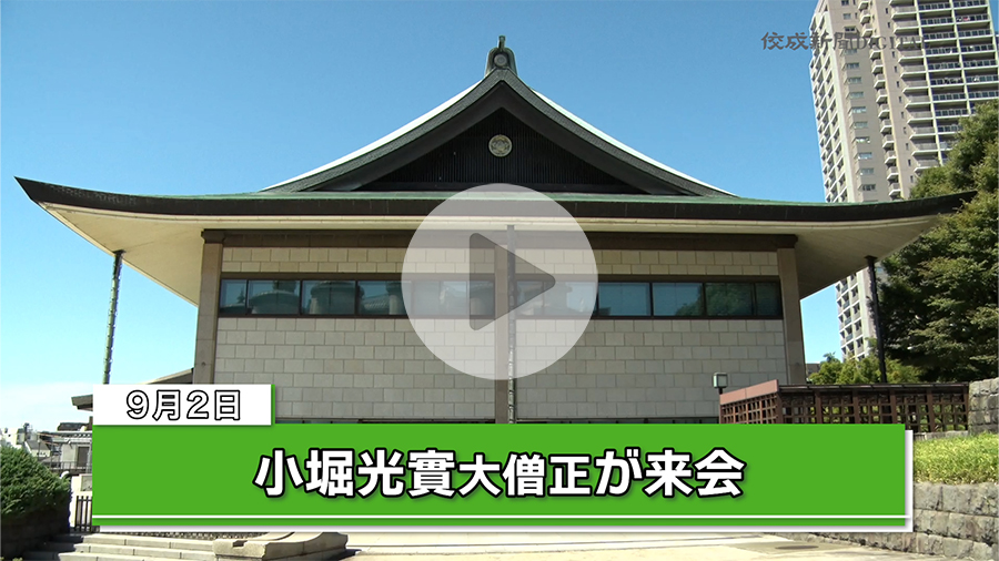天台座主の登竜門として知られる「戸津説法」が、今年も滋賀県の東南寺で8月21日から25日まで行われ、小堀師が説法師を務めた。小堀師は、昨年の教団創立記念式典で祝辞に立つなど本会とのつながりも深い。2日目の8月22日には、庭野会長が東南寺を訪れ、説法を聴講した。また、5日間を通して熊野理事長、和田部長ら教団役職者をはじめ近隣教会の会員延べ約100人が参加した。