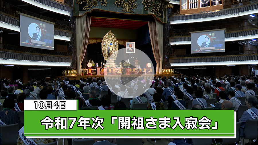 立正佼成会を創立した庭野日敬開祖に報恩感謝の誠を捧げる「開祖さま入寂会(にゅうじゃくえ)」が10月4日、大聖堂と全国各教会で挙行され、大聖堂には会員約1900人が参集した。