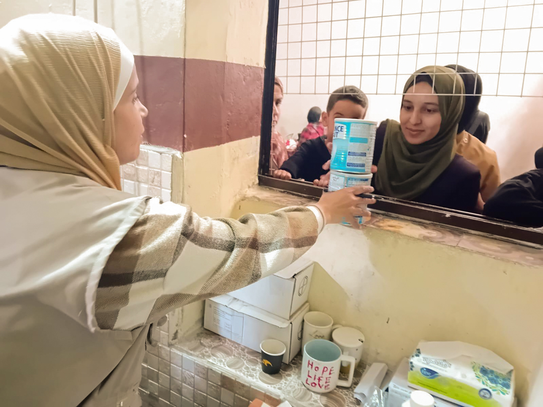飢饉が発生するガザでは簡易クリニックが開設されて乳幼児健診を実施。栄養障がいの子どもにミルクや栄養食、薬剤などが提供されている(CCP提供)