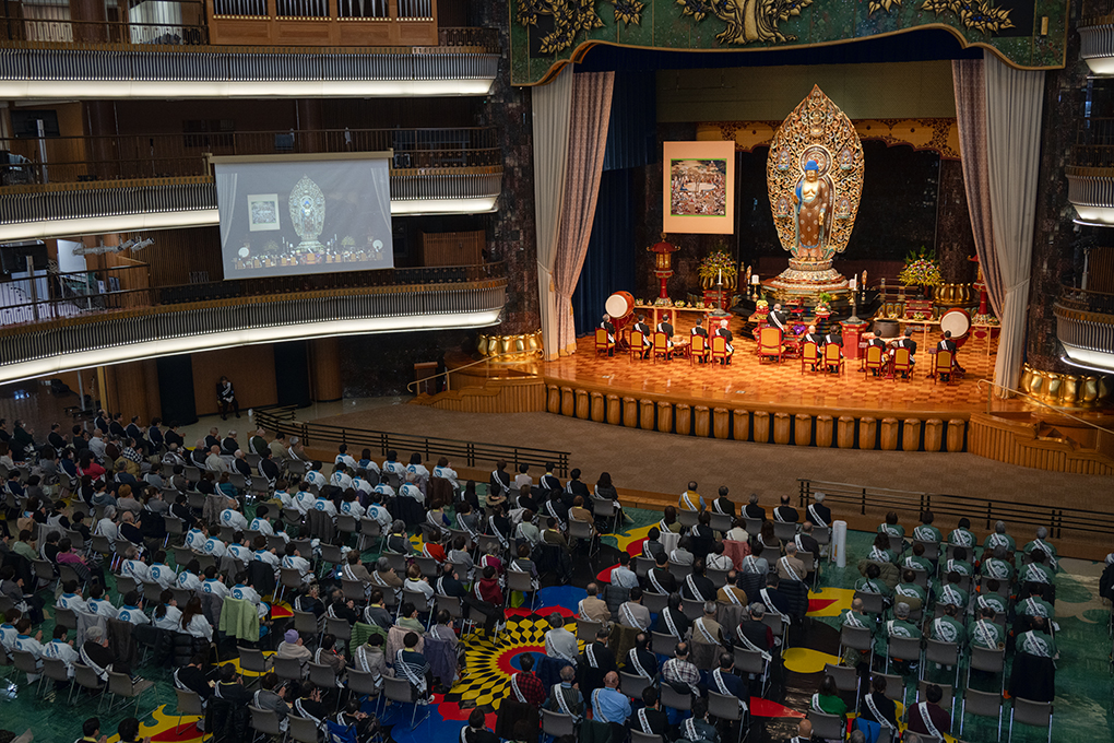 自分を信じ、法を信じる――。釈尊が最後に残したとされる「自灯明・法灯明」の教えをかみしめ、教えに出遇(であ)えた感動の輪を一人でも多くの人に広げていくことを誓う「涅槃会(ねはんえ)」が2月15日、大聖堂はじめ全国各教会で行われた。大聖堂には会員約千人が参集。式典の模様はライブ配信(会員限定)された。