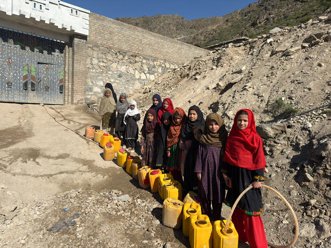 アフガニスタンのプルニ村にて、給水を待つ少女たち(JEN提供)