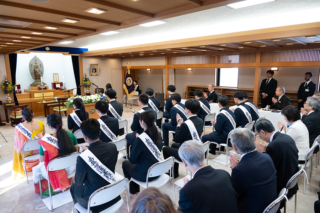 『菩薩の誓願』では、卒林生を代表し、蓮澍・海潮音科のゴータム・アーシカさん(23)=インド・ブッダガヤ法座、光澍大学科の女性(22)=西条教会、光澍ロータス生の男性(25)=新宿教会、光澍高校科の男性(18)=宮田教会=が、学林で学んだ行学二道の精神や、寮生活を通して培った対話・調和の大切さを胸に刻み、今後の人生に活かしていくことを誓願した。