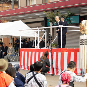 午後2時半からの閉会式では、花角英世新潟県知事と関口芳史十日町市長の祝辞に続き、船橋教会の佐々木啓之教会長の音頭で「追い込み」を実施。この後、庭野会長があいさつに立ち、「本当に、今日はご苦労さまでした」と参加者やまつりの関係者をねぎらった。また、来年が50回目の記念であることに触れ、「また来年も、皆さまと元気に十日町で会えることを楽しみにしております」と期待を寄せた。