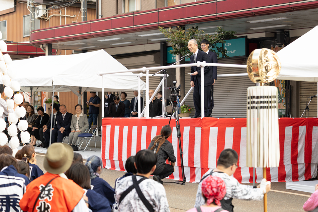 午後2時半からの閉会式では、花角英世新潟県知事と関口芳史十日町市長の祝辞に続き、船橋教会の佐々木啓之教会長の音頭で「追い込み」を実施。この後、庭野会長があいさつに立ち、「本当に、今日はご苦労さまでした」と参加者やまつりの関係者をねぎらった。また、来年が50回目の記念であることに触れ、「また来年も、皆さまと元気に十日町で会えることを楽しみにしております」と期待を寄せた。